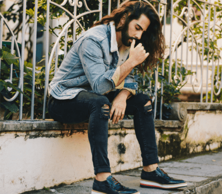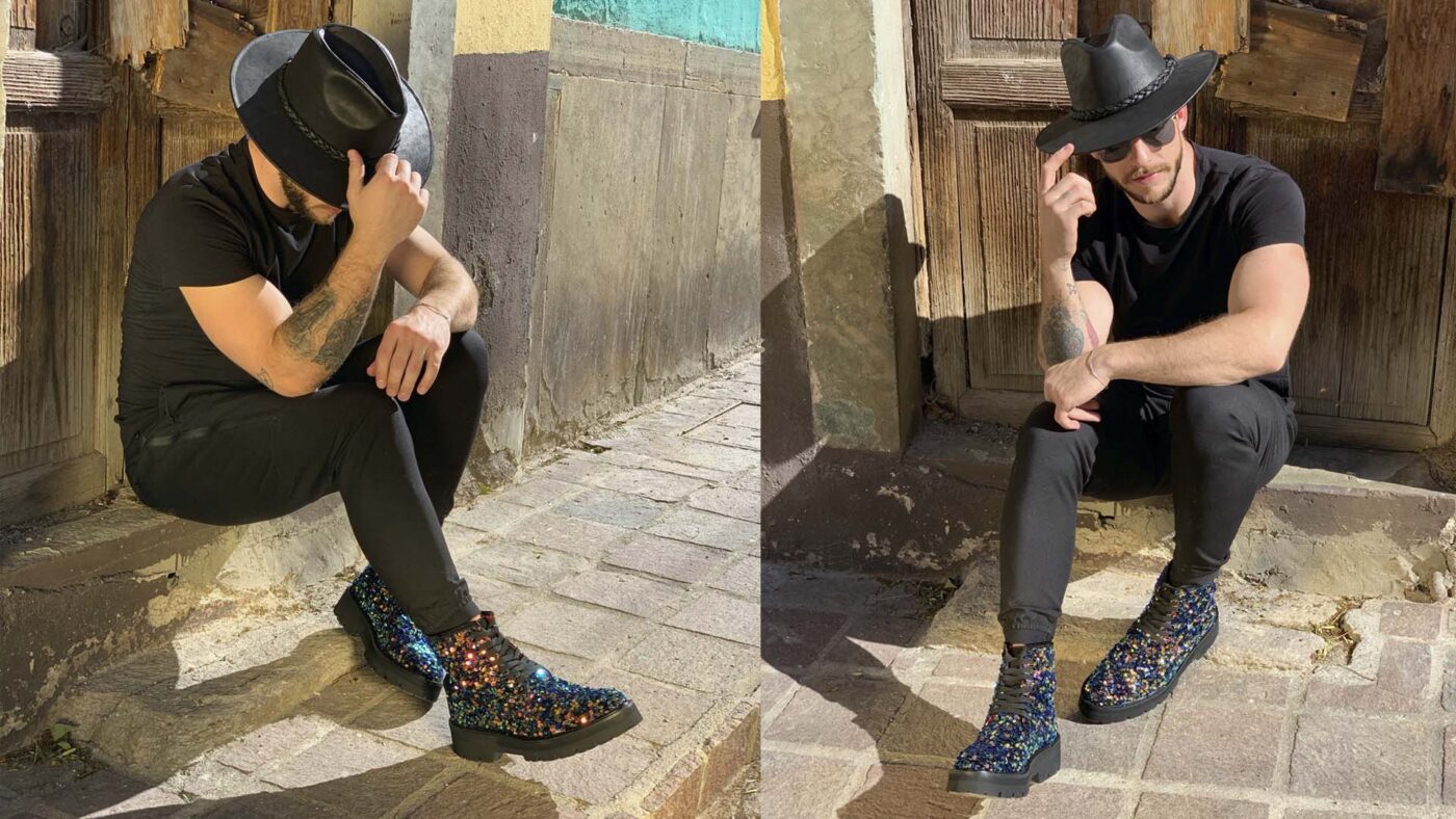 Creeper suela verde piel miel azul