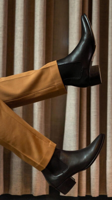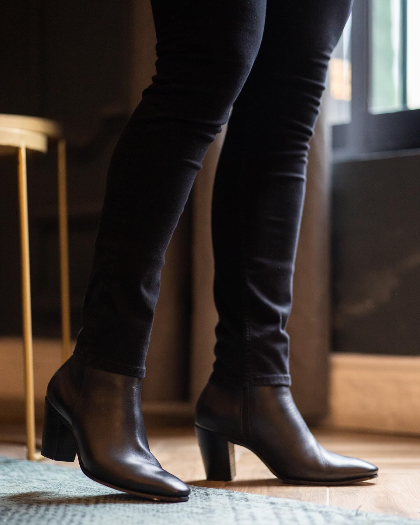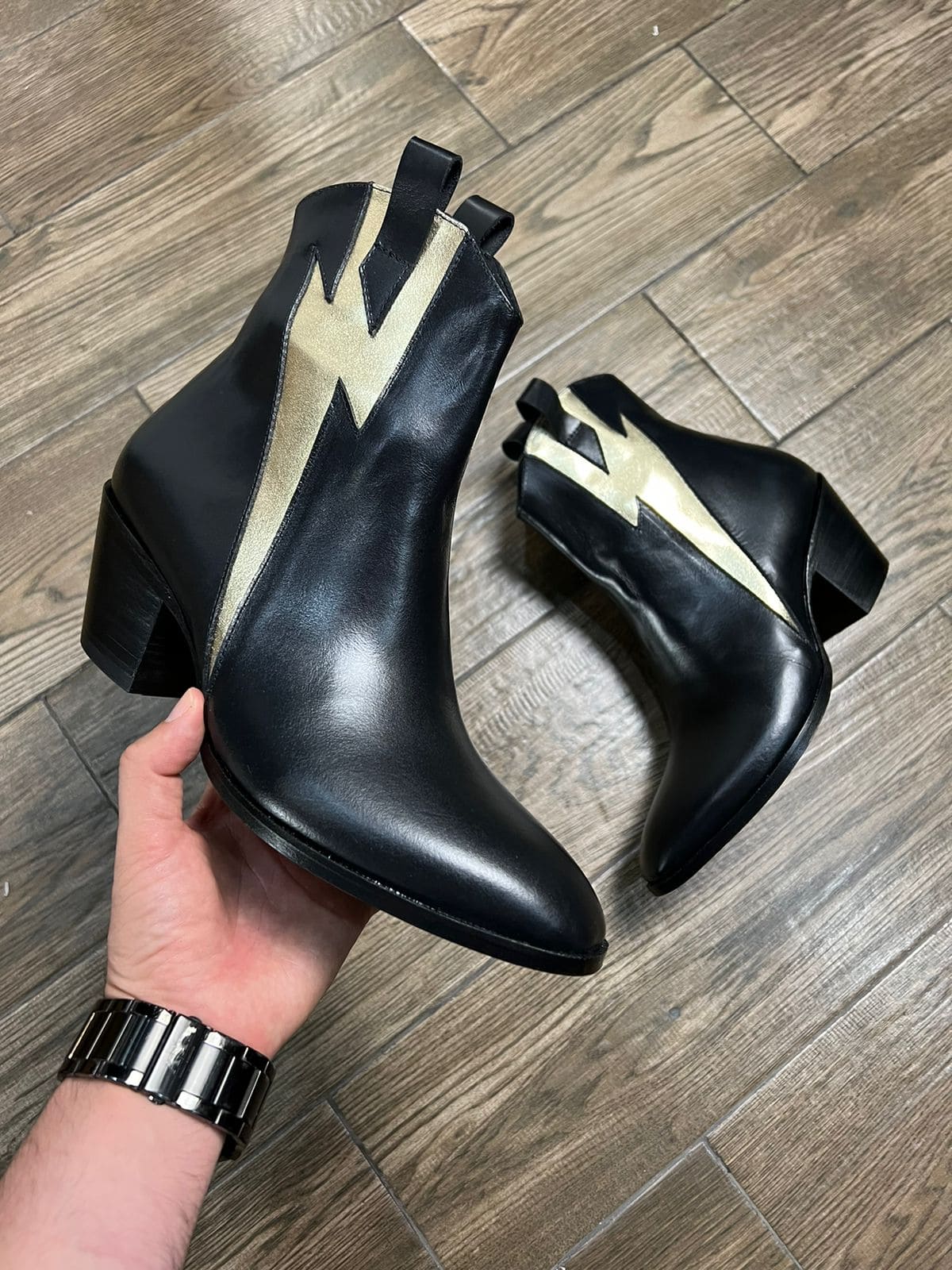 Bota piel negra con arnés desmontable