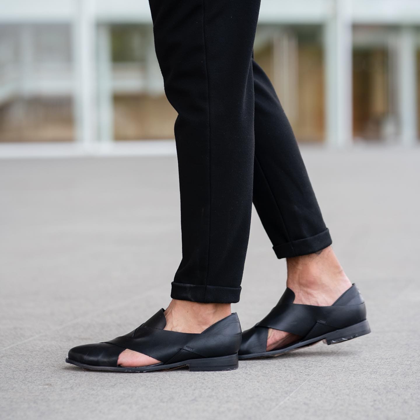Sandalia cruzada piel negra