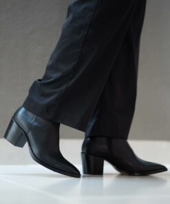 Bota elaborada 100% a mano corte piel color negro, forro de piel y suela de cuero. (El tacón tiene una altura de 7 centímetros)