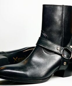 Bota elaborada completamente a mano, corte y forro de piel, suela y tacón de cuero natural. Úsalas de 4 maneras distintas, con arnés, con cadenas, con arnés y cadena o lisas. El tacón tiene una altura de 6.5 cm