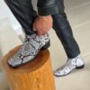 Bota elaborada 100% a mano corte Sintético grabado víbora beige, forro de piel y suela sintética. (El tacón tiene una altura de 7 centímetros)