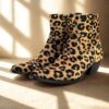 Bota con tacón cubano elaborada a mano. Corte textil leopardo, forro de piel y suela de cuero.