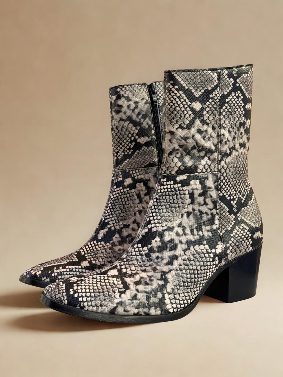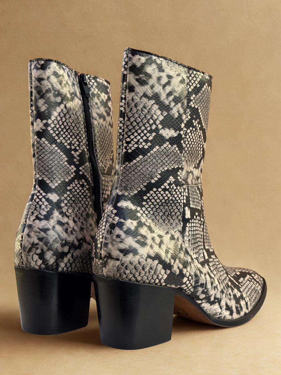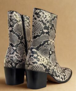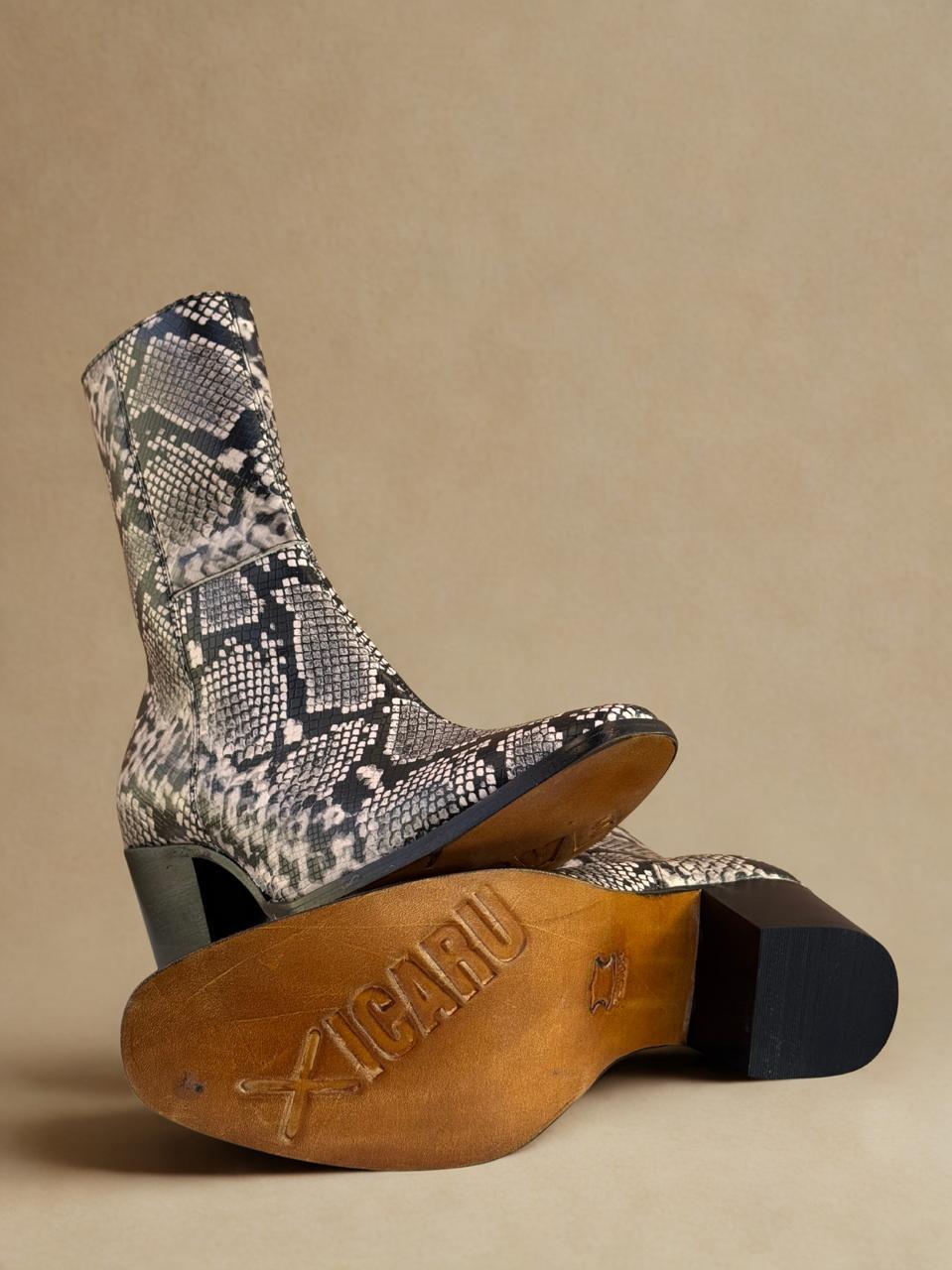 Bota elaborada 100% a mano corte sintético víbora beige, forro de piel y suela de cuero. (El tacón tiene una altura de 7 centímetros)
