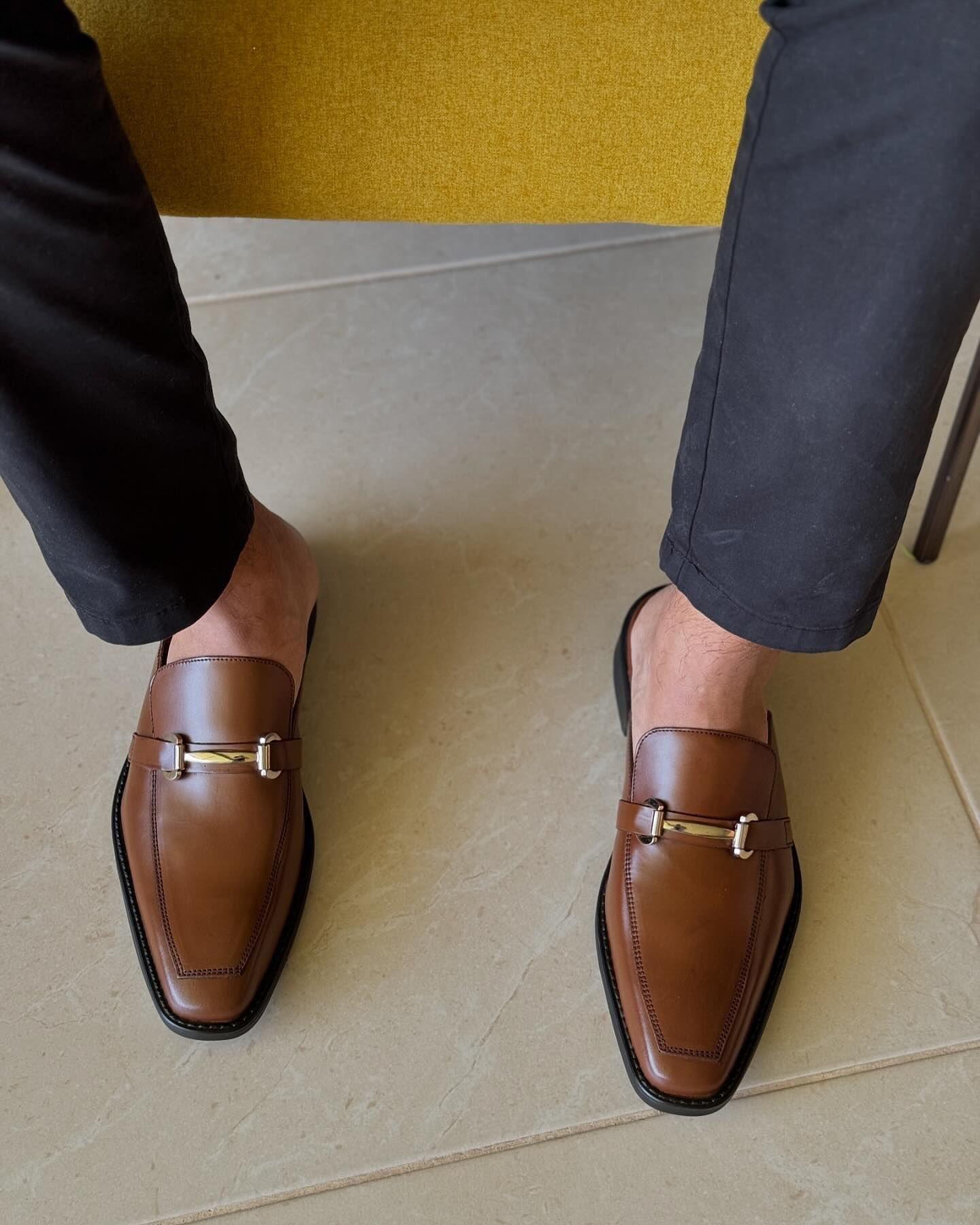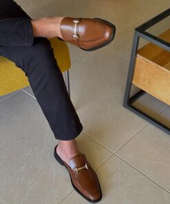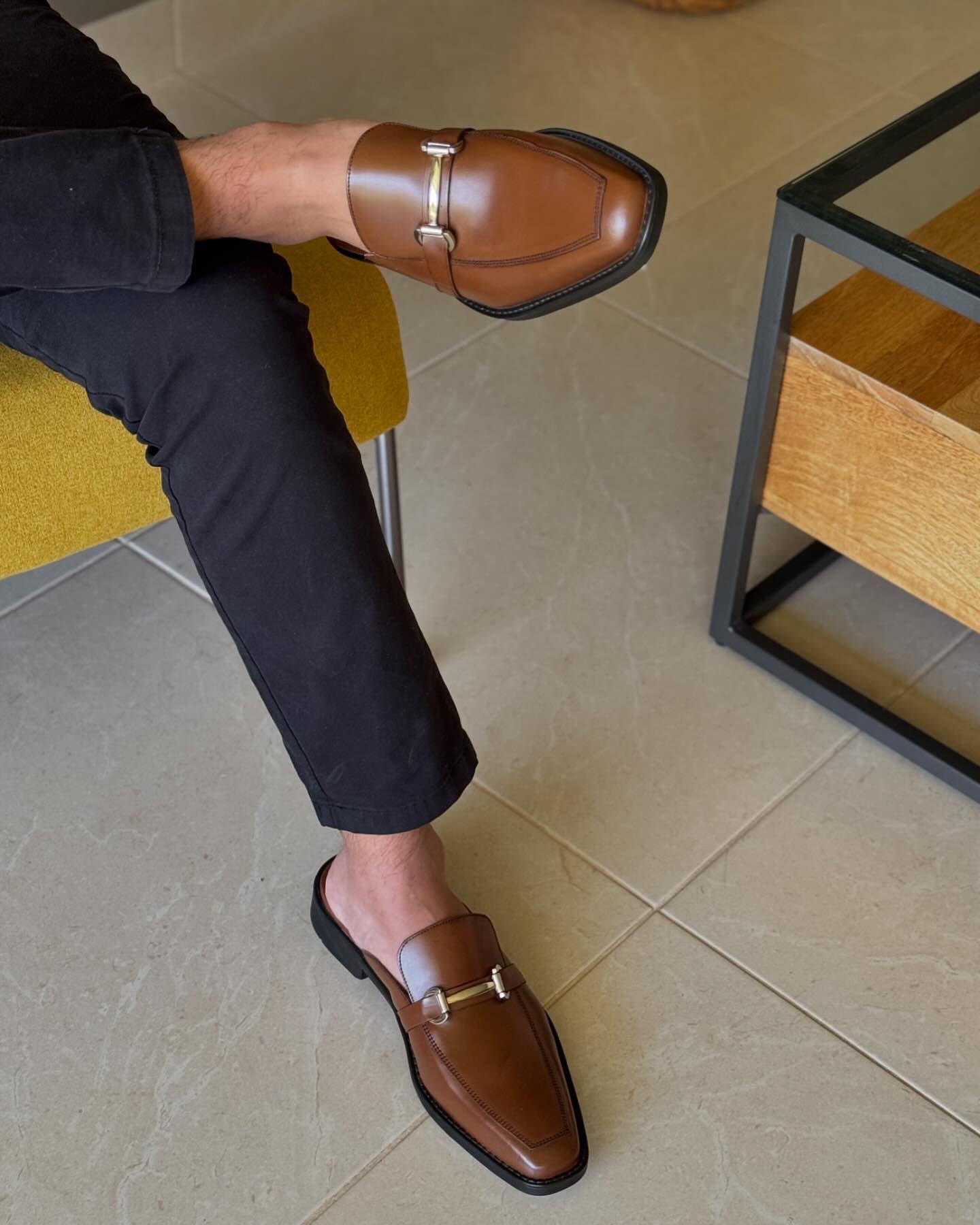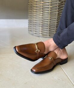 Mule elaborado 100% a mano corte de piel color maple, forro y suela sintético.