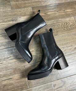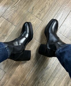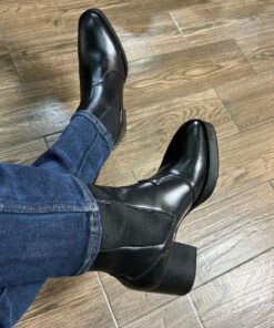 Bota elaborada 100% a mano corte piel color negro, forro de piel y suela sintética. El tacón tiene una altura de 8 centímetros.
