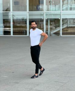 Calzado tipo sandalia elaborado a mano en piel natural, forro de piel y con suela sintética.
