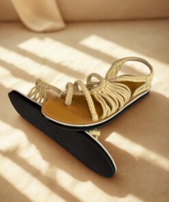 Sandalia elaborada 100% a mano con hilo beige, suela sintética.
