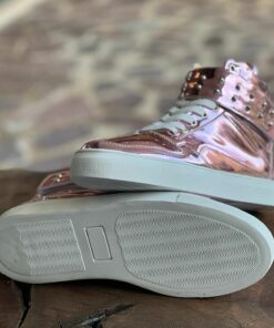 Tenis tipo botín fabricado completamente de manera artesanal corte sintético rosa, látigo con estoperoles y suela sintética.